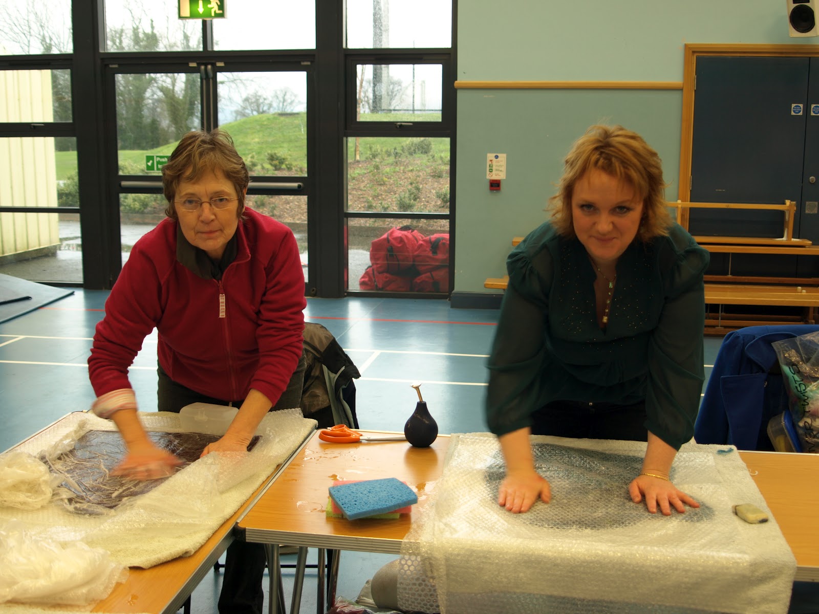 Saturday 4th February Feltmakers North held a hat workshop, the tutors were Gail Cooke and Fiona Harvey (me) Gail had ordered lots of lovely wool tops in a great variety of colours also some silk fibres! We started with a wee cup of coffee to make sure everyone was awake and raring to go.