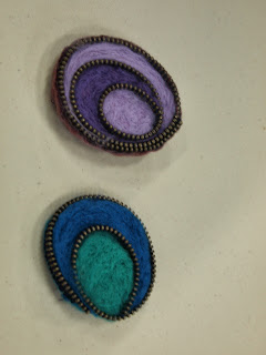 Denise had tacked her zip piece in place and then proceeded to needle felt the design.