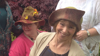 Jeanette and Alison demonstrating! The two days gave ample time to enjoy the learning process without feeling rushed or under pressure!On the second day there was a sewing bee corner where the hats were embellished!
