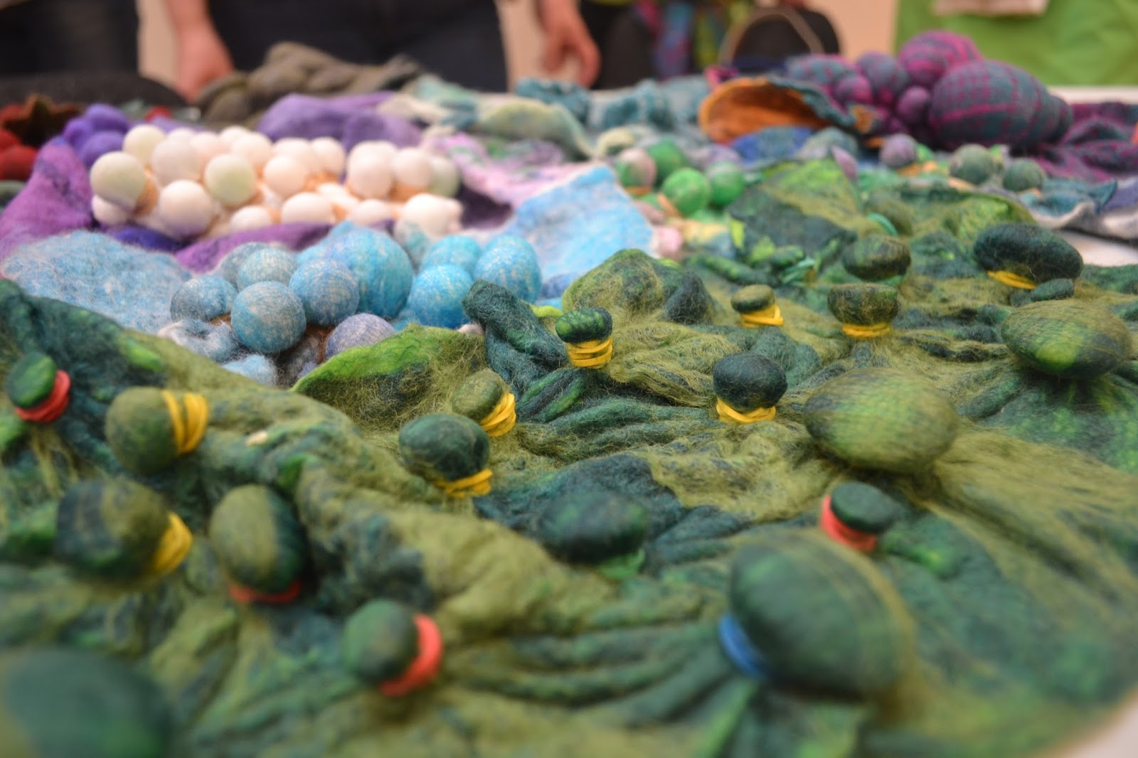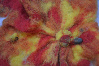 The versatility of the shibori technique in feltmaking is wonderful - from creating pattern through the careful application of the resist material, to adding raised surfaces and texture, to creating 3d stones for a hanging and lots more. It's a great skill to master for the feltmaker.