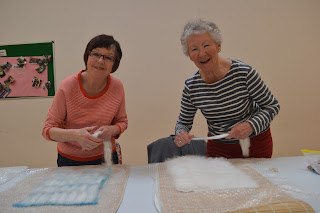 Finally a little tip for everyone - Jane brought along a roll of wire which had been covered in wool, a product which florists use, but which could have all sorts of interesting applications for felters, so watch this space!