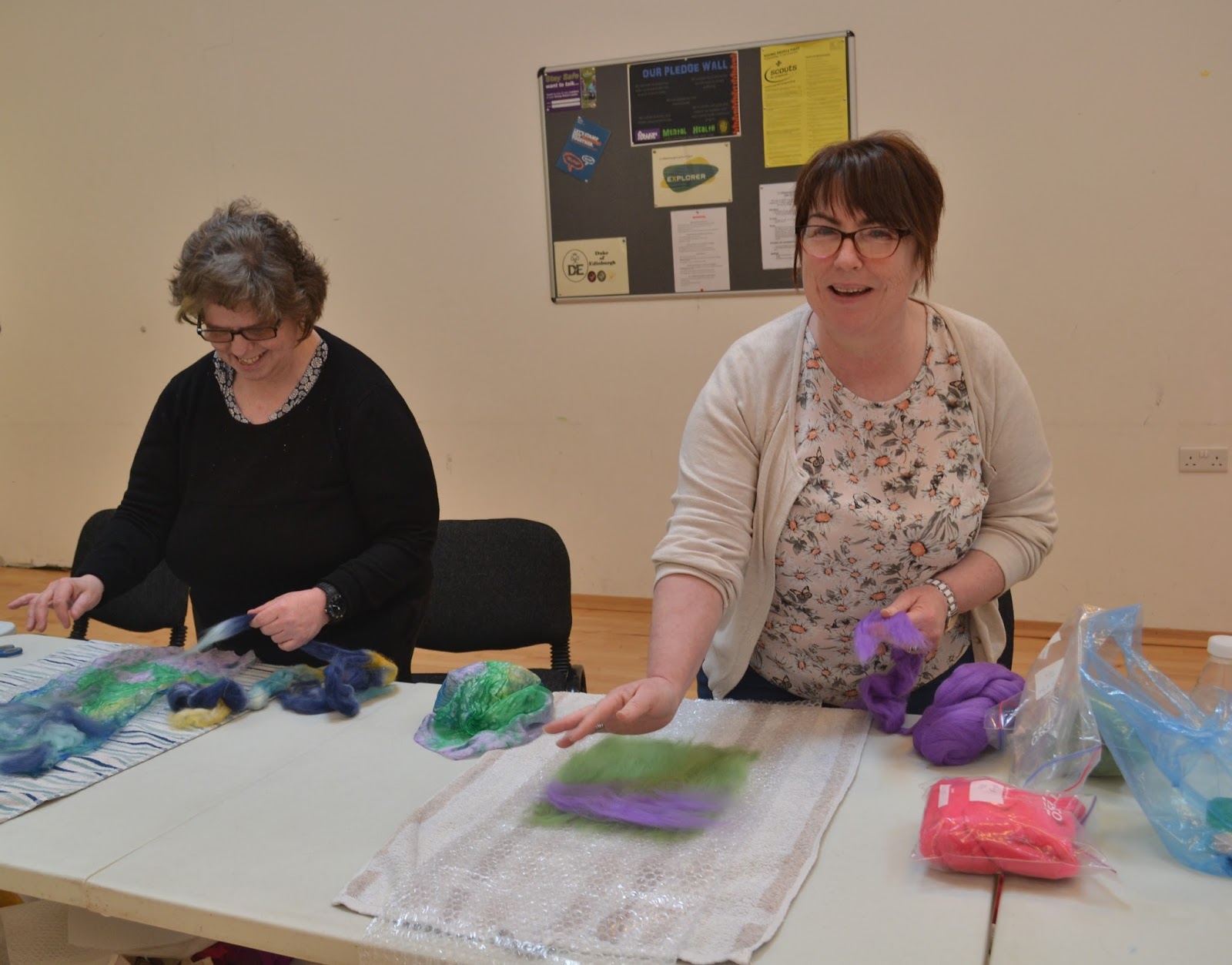 Our April Felt-In was led by Feltmakers North Chair Ann McCullough and she introduced us to shibori techniques in feltmaking. Ann had made lots of samples and shared some interesting ideas on dyeing to achieve traditional shibori effects.