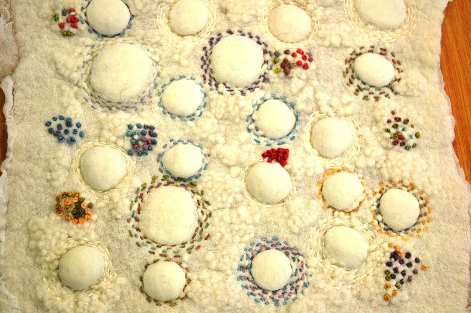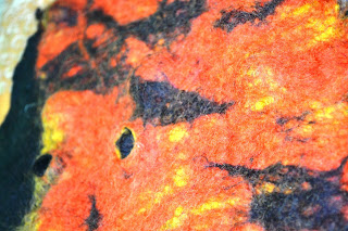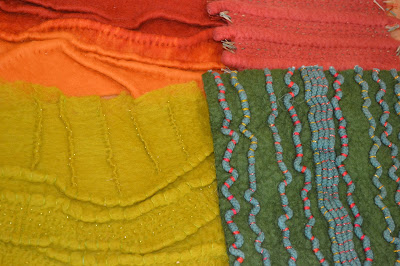 Most felters decided to try this technique on its own but Helen really experimented by incorporating quite a number of different shapes into her sample; it'll be great to see the final results.